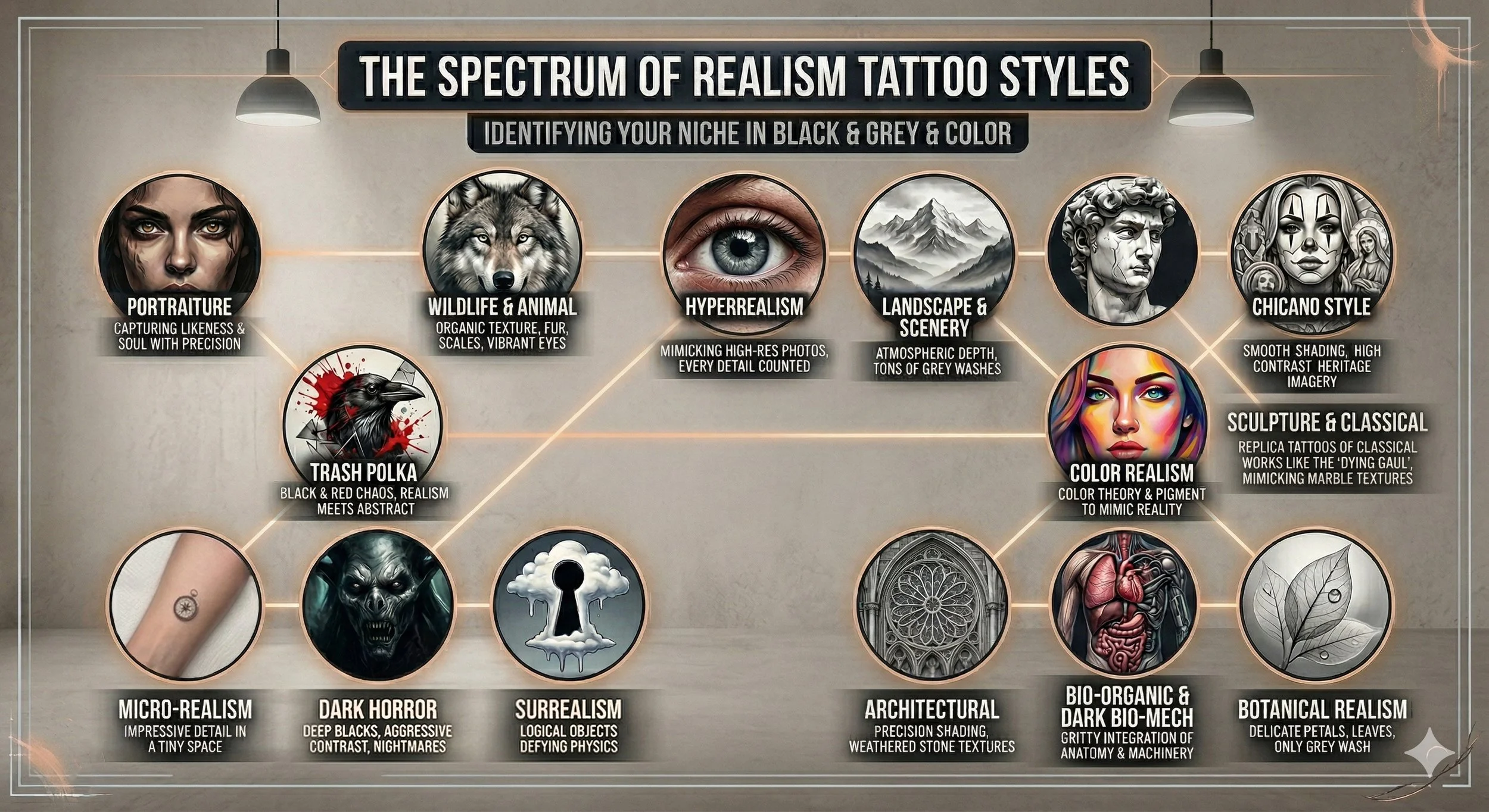 Healed: The ink settles under the skin. A "bad" realism tattoo often disappears or becomes a blurry mess after six months because the artist didn't use enough dark tones to hold the structure. Ask to see healed photos!