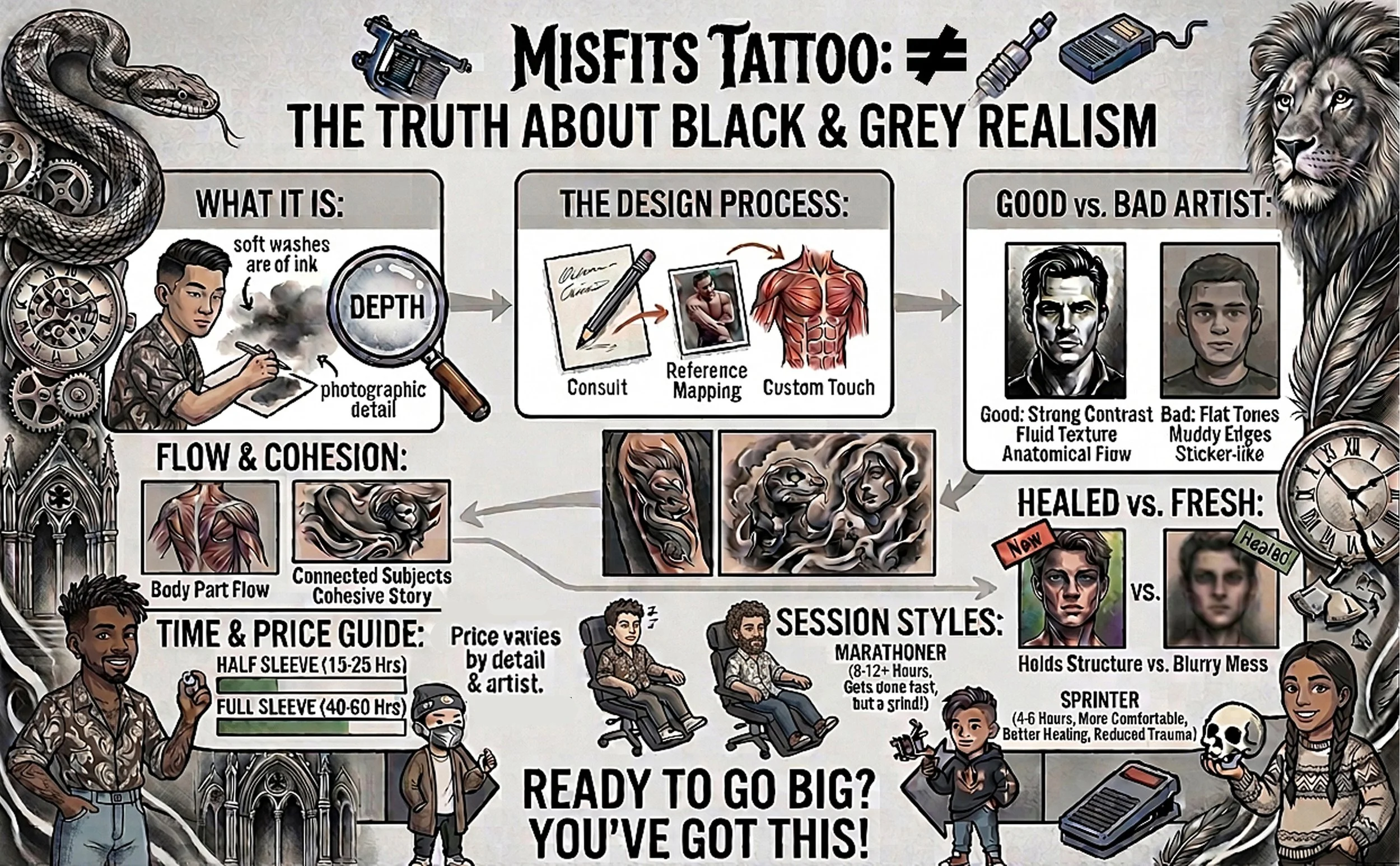 So, you’ve decided to go big. You want a piece that looks like it could breathe, a portrait that stares back, or a landscape so detailed you can almost smell the pine. You’re looking for black and grey realism, the heavy hitter of the tattoo world.