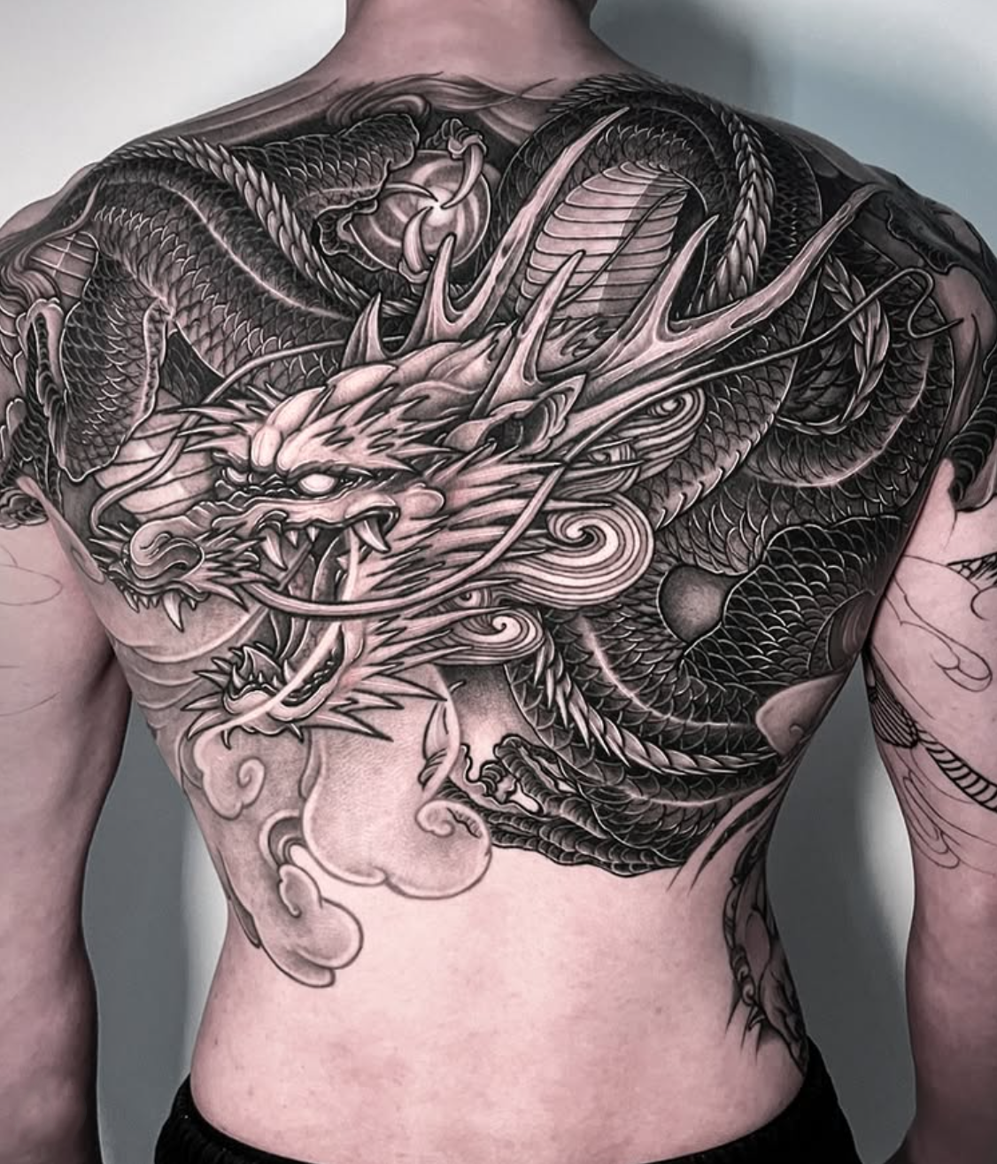 Dragon ¾ back piece by our artist— Nam