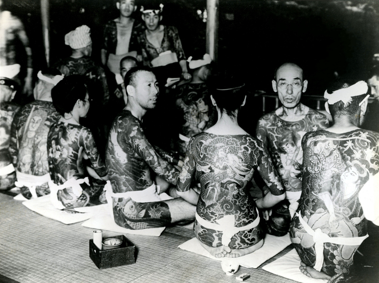 Yakuza members with their Irezumi body suits
